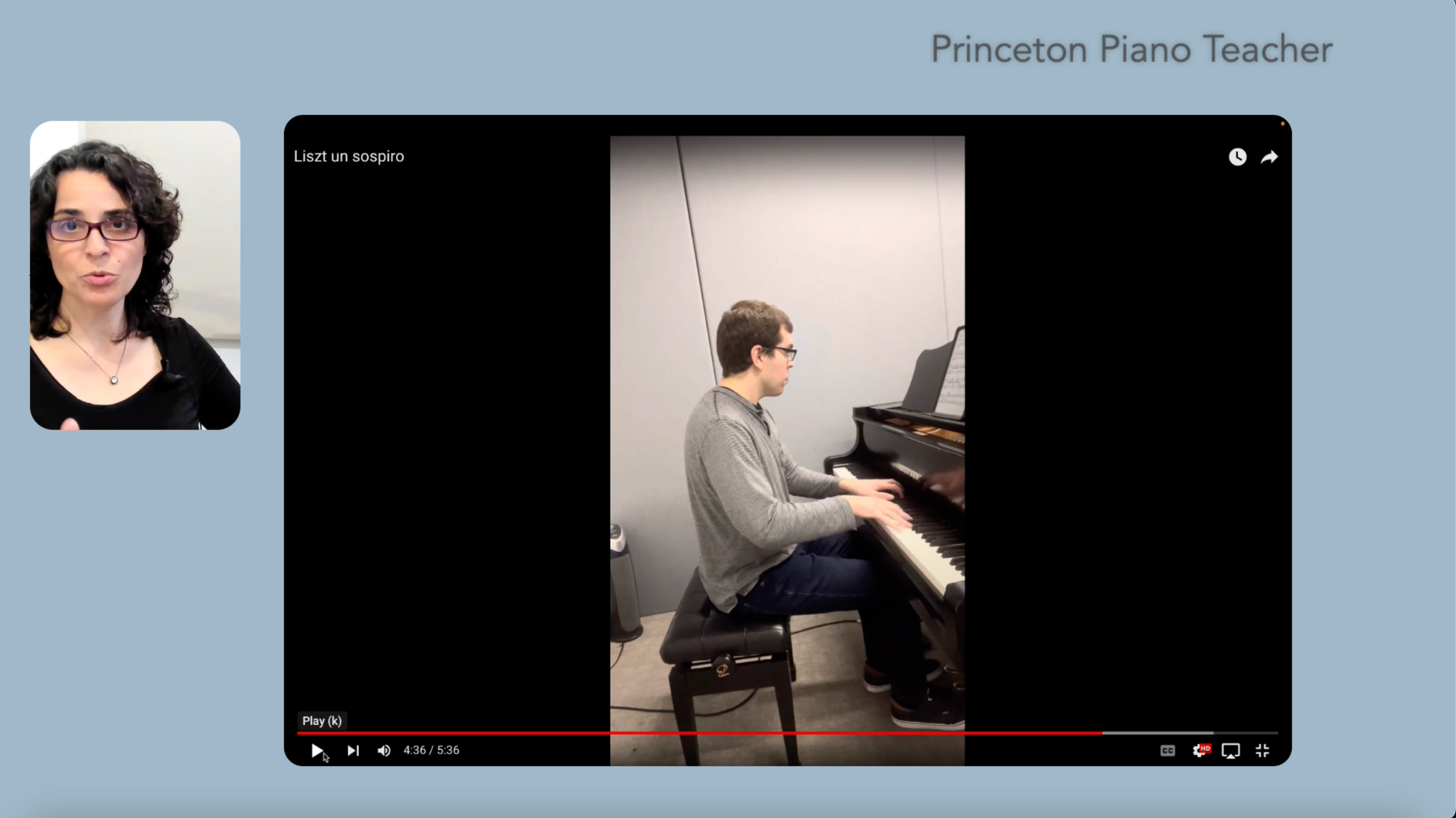 There are even some advantages to working online—you can work with a teacher no matter where you live, there’s no travel necessary, you can use your own piano, and you can refer to lesson recordings to help you practice. Students can also send me a video with questions that come up during their practicing, and I can send them a video reply. This way, students don’t have to wait until their lesson time to have the assistance they need.